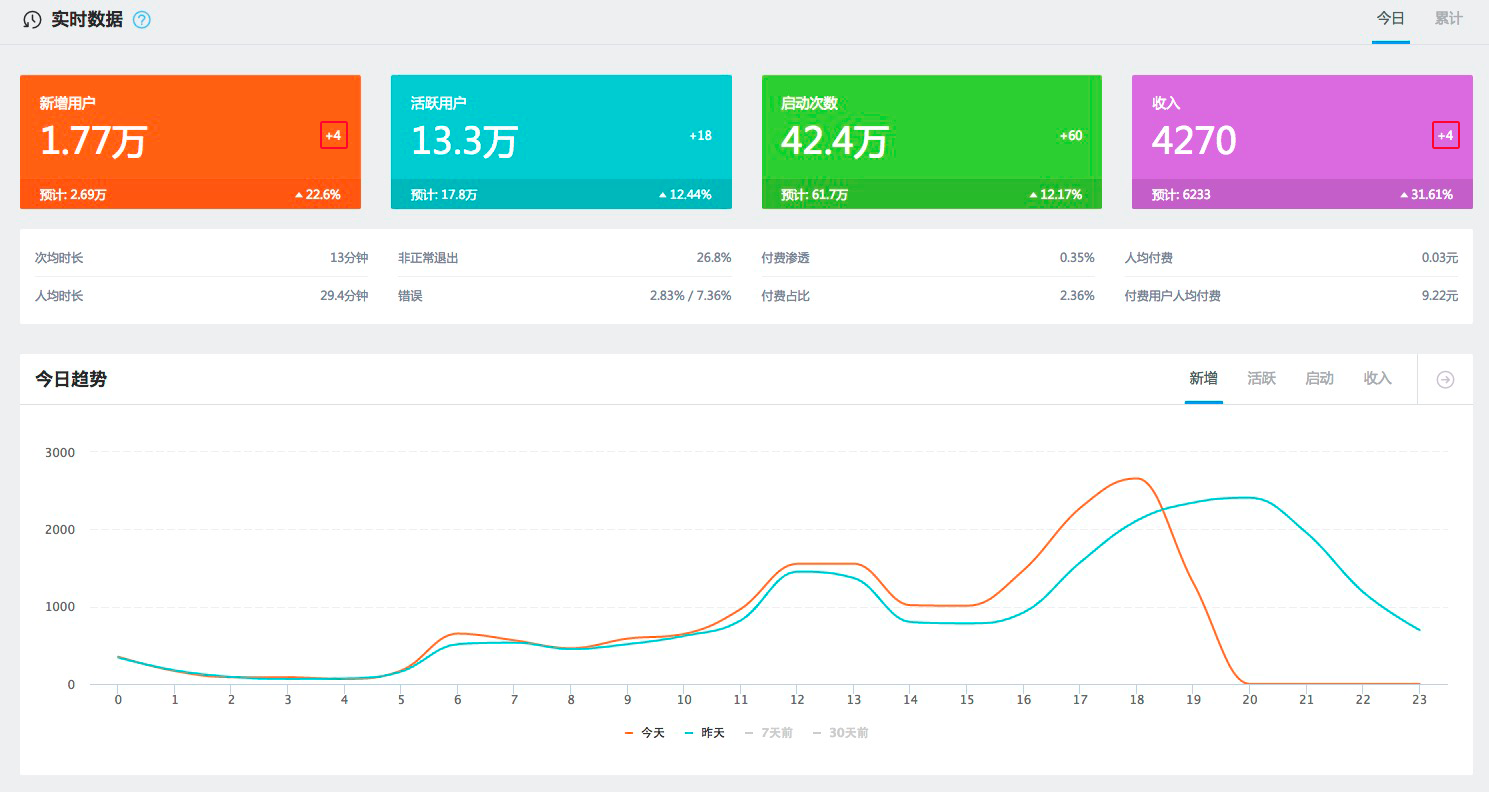 通过 onStart 接口可以获得应用的 新增,活跃,启动,安装,升级 等等各种基本数据。如图:
